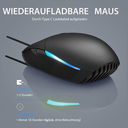 Mouse wireless ricaricabile: Il mouse wireless è integrato con batteria al litio, è sempre ricaricabile grazie alla normale cabina di ricarica di tipo C. Dopo una carica completa, il mouse può funzionare per 1 mese (8 ore di lavoro al giorno).