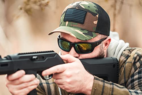 Un cappello strutturato in stile camionista a sei pannelli che presenta una toppa intrecciata Magpul American Flag situata davanti e al centro del cappello