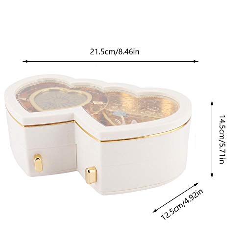 MAGT Portagioie musicale, custodia per riporre gioielli musicali di Ballerina a doppio cuore, per bambine (bianco)