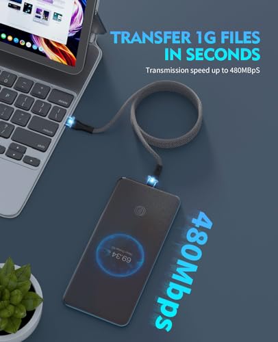 [Trasferimento dati rapido]: oltre alla ricarica rapida, questo cavo USB C supporta il trasferimento dati ad alta velocità, perfetto per sincronizzare file, foto e video essenziali tra dispositivi a velocità fino a 480 Mbps, trasferire 1 GB di file in soli 20 secondi e garantire la massima produttività.