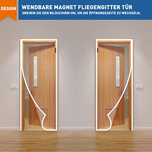 MAGZO Zanzariera magnetica per porta, 100 x 210 cm, apertura laterale invisibile, per porta del balcone, soggiorno, terrazza, zanzariera, montaggio con adesivo, senza foratura, colore: bianco
