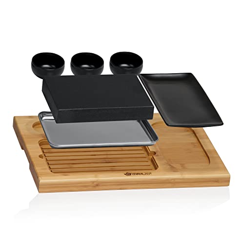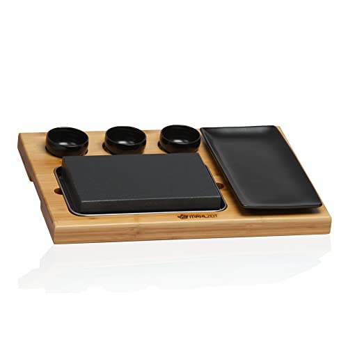 Mahlzeit Set pietra lavica | Set con pietra calda, piastra e pratica tavola di legno di bambù | Steak Stone, Steak Stone, Hot Stone Steak, Grill Stone