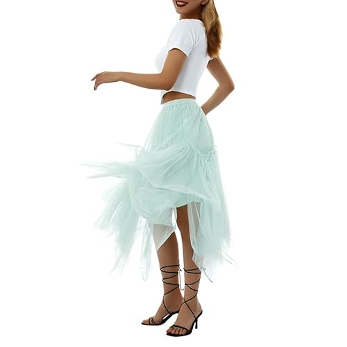 MAHUAOYIXI Gonna da Donna in Rete a Vita Alta Tinta Unita Irregolare Abito a Mezza Lunghezza Casual Gonna in Tulle Donna Elegante Tutu Gonna in Pizzo Vintage (Verde, Taglia Unica)