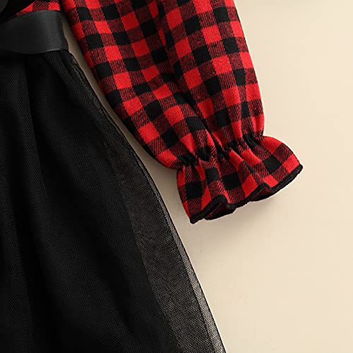 MAHUAOYIXI Natale Abito Bambina a Maniche Lunghe Abito Tutu Gonna Festa Casual Principessa Abito in Pizzo Natale con Scozzese Rossa Carina Abito in Cotone Comodo (Rosso, 4-5 Anni)