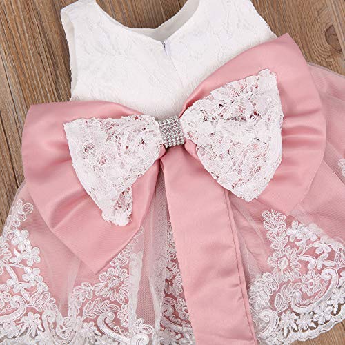 MAHUAOYIXI 2 Pezzi Vestito da Neonata Senza Maniche con Scollo Rotondo in Pizzo Floreale con Fascia Tutu Gonna Bambina Principessa Elegante Battesimo Casual Abito Sposa (Rosa1, 12-18 Mesi)