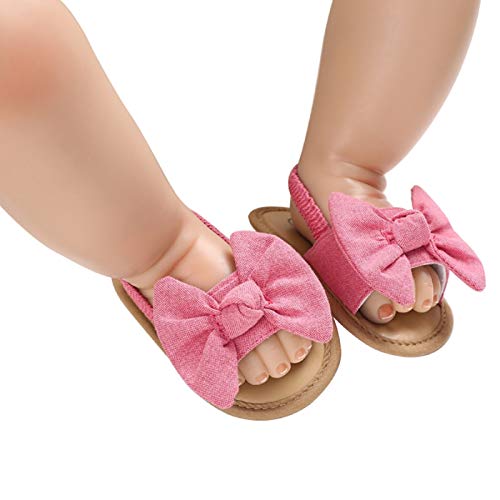 MAHUAOYIXI Sandali Neonate con Fiocco Scarpe BimbaEstive Antiscivolo Comodi (Rosso, 6-12M)