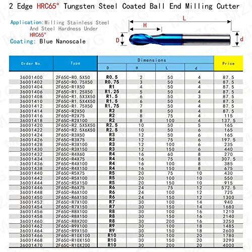 Maifix 2 Flauto HRC65 R0.5x2xD4x50 Punte da taglio per frese a testa sferica Set di frese in acciaio al tungsteno CNC Set di frese a naso toro