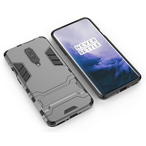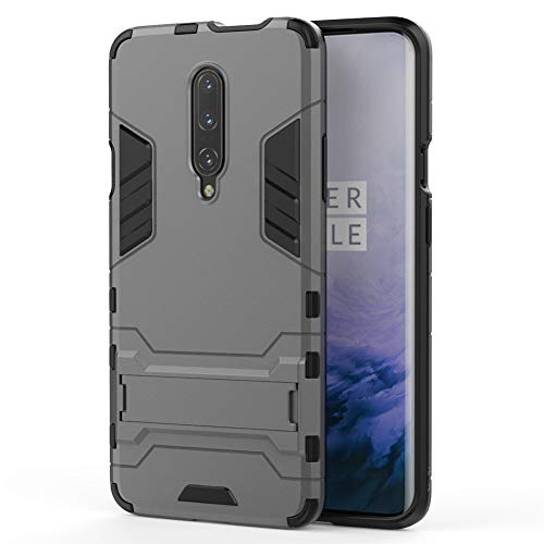 MaiJin Cover per OnePlus 7 PRO (6,67 Pollici) 2 in 1 Hybrid Dual Layer Completamente Shock Resistente Armour con Cavalletto Funzione Custodia (Grigio)