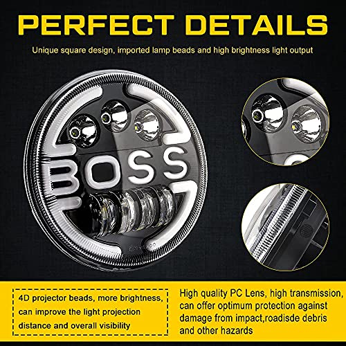 〖Confezione e servizio〗2pcs boss fari a LED da 7 inch + 2pcs adattatori da H4 a H13 + 1pcs guida all'installazione. La qualità è garantita per 1 anno. In caso di domande, non esitate a contattarci.