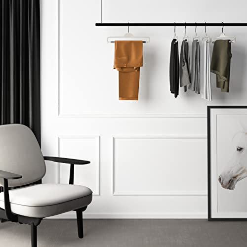 Mainetti Appendini per Pantaloni, Jeans, Uomo Donna, Grucce in Plastica, Sottili, Salvaspazio, con Barra Porta Pantaloni in Spugna Antiscivolo, Set di 10 pezzi, Bianco Lucido con Gancio Nero, 38cm