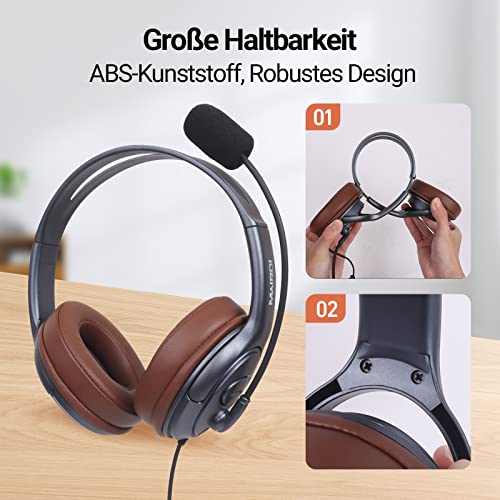 Suono di alta qualità: voce HD con cuffie USB audio wideband per telefonate dal suono naturale. Microfono direzionale e cancellazione delle interferenze per ridurre il rumore di fondo per una conversazione chiara. La scheda audio integrata con riduzione del rumore migliora la chiarezza vocale, perfetta per il riconoscimento vocale. Circuito acustico di protezione dagli urti, filtraggio di alta intensità per proteggere il vostro udito.