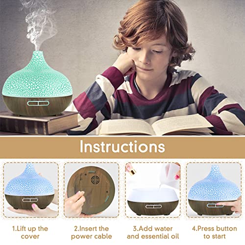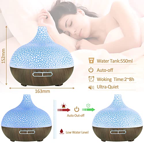 Dispositivo per aromaterapia da 550 ml: funzioni 3 in 1, diffusore di aromi, umidificatore, lampade profumate. Materiali sicuri e sani, con la tecnologia a prova di bambino senza BPA, è possibile posizionare il diffusore in una cameretta dei bambini, camera da letto, soggiorno, ecc.