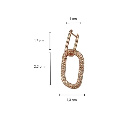 MAISON GIOIELLI FIRENZE - OHANA Mono Orecchino con Pendente Rettangolare e Zirconi, Orecchino Singolo Placcato Oro, Chiusura a Scatto, Ipoallergenico, Antigraffio e Waterproof (oro rosa, nero)