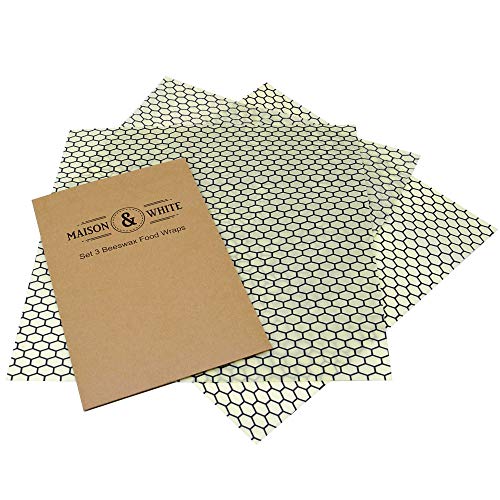 Maison & White Set di 3 involucri in cera d'api | Tessuto in cera d'api biodegradabile riutilizzabile e sostenibile | 35x35cm | M&W