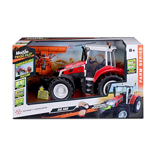 Maisto Tech R/C trattore Massey Ferguson 5S.145 con cursore per neve: trattore radiocomandato con luce e spazzaneve rimovibile, con controller stick, dai 8 anni in su, rosso (582724)