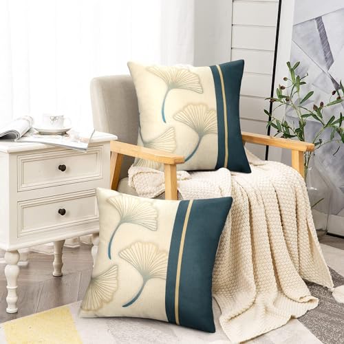 MAIXUN Federa per Cuscino Foglia di Ginkgo Gialla 45x45 cm Copricuscini Decorativa Blu Navy con Foglie Dorate Decorativa per Divano, Camera da Letto, Auto, Casa, Soggiorno, Decorazione, set di 2