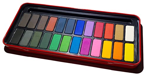 Una scatola resistente da 24 tavolette ad acquerello in un assortimento di colori