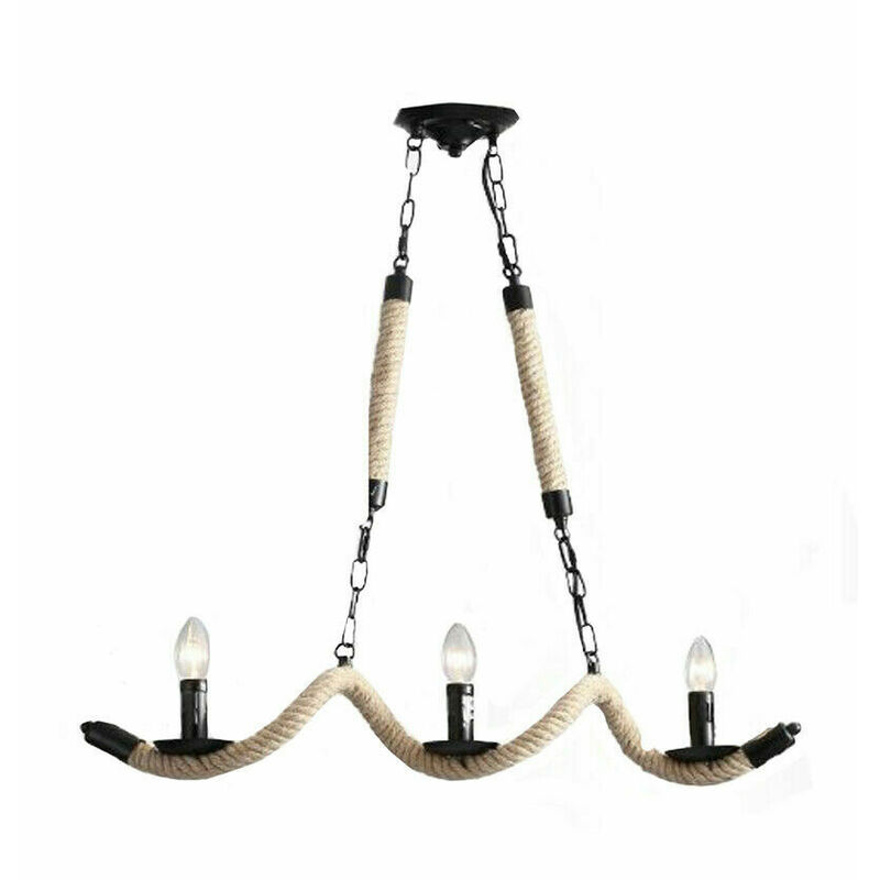 Lampadario dal design rustico a corda in canapa e metallo perfetto per arredare casa con originalità. Dotato di 3 portalampada con attacco E14, perfetto per casa, tavernette, bar, pub e ristoranti. Valorizza i tuoi ambienti interni dandogli un tocco di originalità e autenticità. Puoi installarla comodamente in pochi secondi e senza alcuna fatica. Rapida e facile da pulire non dovrai preoccuparti dell'usura. Struttura solida e stabile, ideale per un uso domestico sicuro. Specifiche Attacco E14 (lampadine non incluse) Alimentazione Ac220v Lunghezza totale: 1000 mm circa Diametro: 780 mm circa Materiale: canapa con catene in metallo Contenuto della confezione 1x lampadario vintage 3 portalampada
