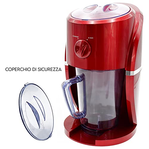 MAKA Tritaghiaccio Elettrico per Granite a Neve in Acciaio Inox con Paletta per Ghiaccio Vaschetta di Raccolta 1.1 Litri Interruttore Sicurezza Trita Ghiaccio Dessert Cocktail caffè tè (Rosso)