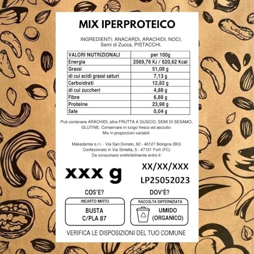 Makadamia - Mix di Frutta Secca 500 g - Mix Iperproteico - Anacardi, Arachidi Tostate, Noci Californiane, Pistacchio, Semi di Zucca.