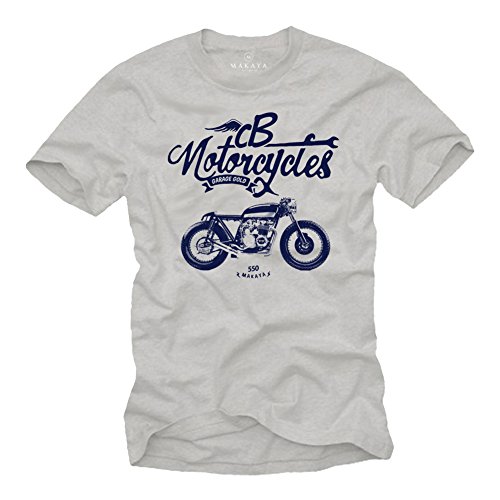 MAKAYA Maglietta Moto Cafe Racer - Honda CB500 - T-Shirt Uomo Vintage Biker Grigio XXXL
