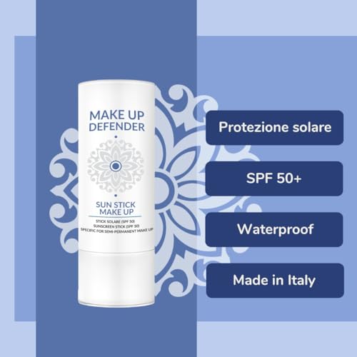 Make Up Defender - Sun Stick Make Up 9ml - SPF 50+ - Per Il Make Up Semipermanente - Non Lascia Alone Bianco - Waterproof - Made In Italy