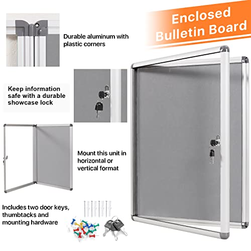 MAKELLO Bacheca Chiusa In Feltro Grigio Pannello Con Anta Battente Per Interni in Alluminio per Condominiale Ufficio Scuola, 67x50cm-4xA4