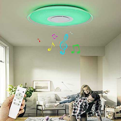 MAKELONG Plafoniere a LED Con Altoparlante Bluetooth, 36W 450mm 3000lm, APP per Smartphone e Telecomando, Regolazione Luminosità e Colori, 3000-6500K + RGB Lampadario, Modalità luce notturna