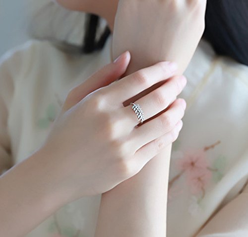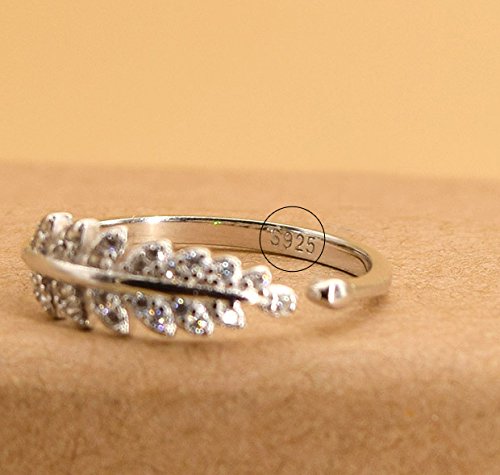 MAKFORT - Anello da donna in argento 925, regolabile, con foglia di strass