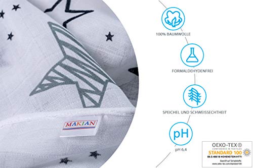 Makian, set di 3 panni in mussola, 80 x 80 cm, testati contro la presenza di sostanze nocive secondo lo standard Öko-Tex 100, 100% cotone, a doppio tessuto, qualità premium