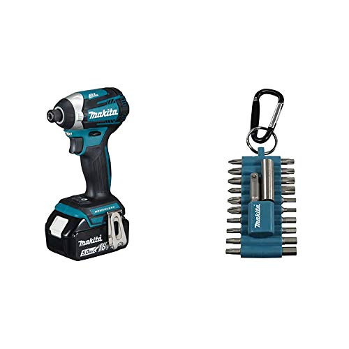 Makita DTD154RTJ - Atornillador de impacto 18V 5,0ah 175nm BL makpac 2 bat. + Makita P-81175 Bit-Set 22-Pezzi Con Moschettone