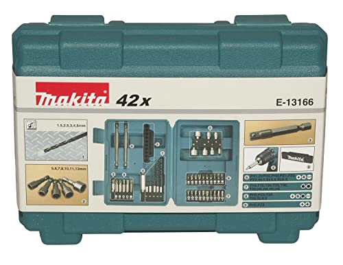 Makita E-13166 - Set di punte per trapano e vite, 42 pezzi