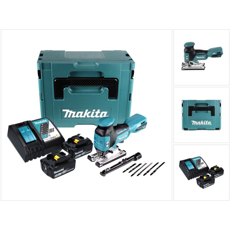 Dotazione: - 1x Makita DJV 181 Seghetto alternativo - 1x Bocchetta aspirapolvere - 1x Piastra di scorrimento - 2x Lame per sega Makita per legno B-10 - 2x Lame per sega Makita per legno B-13 - 2x Lame per sega Makita metallo B-22 - 2x Batterie Makita BL 1860 B 18 V 6000 mAh / 6,0 Ah - 1x Valigetta Makita Makpac - 1x Inserto universale - 1x Caricatore rapido Makita DC 18 RC Descrizione prodotto: Il seghetto alternativo a batteria Makita DJV 181 colpisce per la sua struttura leggera e maneggevole e le sue prestazioni migliorate grazie al motore senza spazzole (Brushless). Questo seghetto ha 3 impostazioni di corsa del pendolo e una posizione neutra, e in più, la frequenza di corsa è controllata elettronicamente e il motore è dotato di un avviamento dolce. La piastra di base può essere ruotata di 45° su entrambi i lati. Particolarmente pratici sono il cambio lama senza attrezzi e il doppio LED che illumina perfettamente l'area di lavoro. Dati tecnici: Velocità a vuoto: 800 - 3.500 min-1