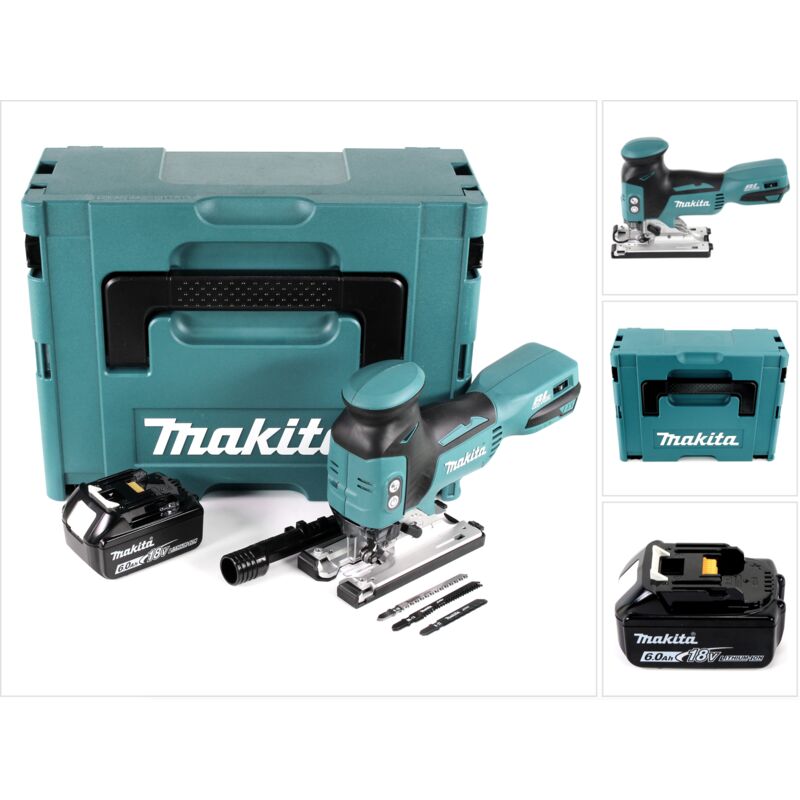 Dotazione: - 1x Makita DJV 181 Seghetto alternativo - 1x Bocchetta aspirapolvere - 1x Piastra di scorrimento - 2x Lame per sega Makita per legno B-10 - 2x Lame per sega Makita per legno B-13 - 2x Lame per sega Makita metallo B-22 - 1x Batteria Makita BL 1860 B 18 V 6000 mAh / 6,0 Ah - 1x Valigetta Makita Makpac 2 - 1x Inserto universale - senza caricabatterie Descrizione prodotto: Il seghetto alternativo a batteria Makita DJV 181 colpisce per la sua struttura leggera e maneggevole e le sue prestazioni migliorate grazie al motore senza spazzole (Brushless). Questo seghetto ha 3 impostazioni di corsa del pendolo e una posizione neutra, e in più, la frequenza di corsa è controllata elettronicamente e il motore è dotato di un avviamento dolce. La piastra di base può essere ruotata di 45° su entrambi i lati. Particolarmente pratici sono il cambio lama senza attrezzi e il doppio LED che illumina perfettamente l'area di lavoro. Dati tecnici: Velocità a vuoto: 800 - 3.500 min-1 Corsa lama: 26