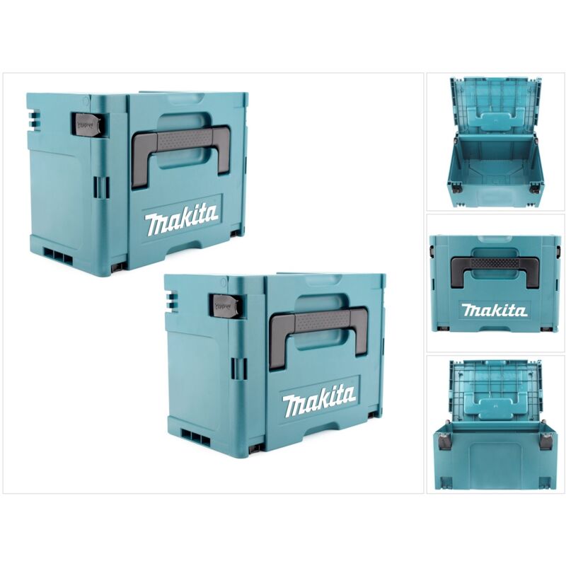 Dotazione: - 2x Valigette in plastica impilabili Makita MAKPAC 3 - senza inserto Descrizione prodotto: Le valigette da trasporto Makpac 3 Makita sono adatte al trasporto della maggior parte degli utensili Makita. La valigia Makpac 3 ha due serrature e una maniglia, inoltre è possibile fissare il Makpac 3 con qualsiasi tipo di valigia Makpac. Tutti gli utensili Makita possono essere fissati con un inserto (non incluso) corrispondente alla macchina, consentendo di riporre e trasportare facilmente attrezzature, batterie, caricabatterie e altri accessori. Dati tecnici: Lungezza: ca. 395 mm Larghezza: ca. 295 mm Altezza: ca. 215 mm Materiale: plastica