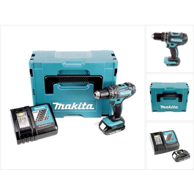 Dotazione: - 1x Makita DHP 482 Z Trapano avvitatore a percussione a batteria 18V - 1x Batteria BL 1815N 1,5 Ah - 1x Valigetta Makita Makpac II - 1x Caricatore rapido DC 18 RC - 1x Inserto in schiuma espansa - 1x Gancio per cintura Descrizione prodotto: Il trapano avvitatore a percussione a batteria Makita DHP 482 ha un motore a 4 poli con invertitore di rotazione e un freno motore elettronico, che garantisce maggiore sicurezza e controllo durante l'uso. La macchina è dotata inoltre di tecnologia XPT (eXtreme Technology Protection) per limitare le infiltrazioni di acqua e polvere, e di un doppio LED integrato per lavorare anche nei luoghi più bui. Il trapano a percussione Makita DHP 482 ha una velocità variabile all'aumentare della pressione sul grilletto, fornendo un controllo perfetto per il lavoro da svolgere. La macchina è dotata di un'impugnatura ergonomica in gomma Soft Grip che aiuta a ridurre l'affaticamento dell'operatore. Il trapano a percussione a batteria Makita DHP 482 è
