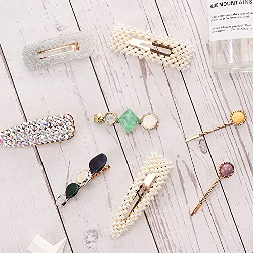Materiali di alta qualità: realizzati con perle artificiali, acriliche, resina, strass e lega metallica, questi fermagli per capelli sono di superficie alla moda e mantengono i capelli saldamente.
