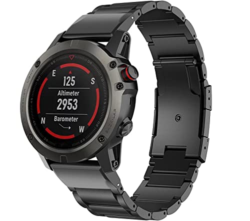 MaKTech Cinturino in Titanio per Garmin,Cinturino in Metallo a Sgancio Rapido da 26mm con Fibbia Tartaruga,per Smartwatch Garmin Fenix 7X/6X Pro/5X/5X Plus/3/3HR (Nero)