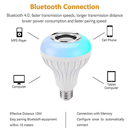 MAKTXL Lampadina che cambia colore, Lampadina a LED Altoparlante Bluetooth Lampada RGB che cambia colore Audio stereo wireless con telecomando 6W
