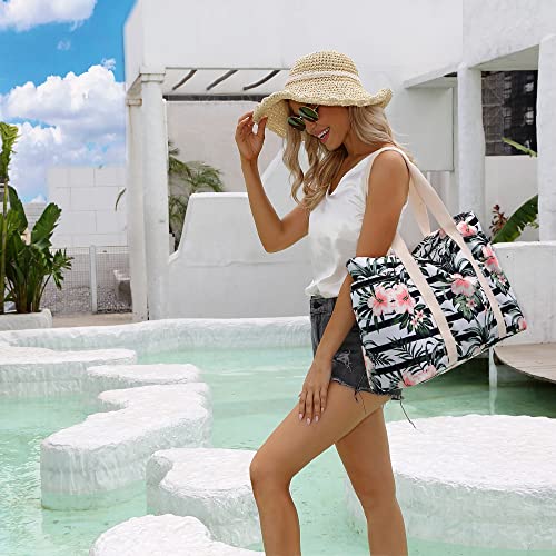 Makukke Borsa da Spiaggia con Cerniera, XXL Canvas Shopper Donna Tracolla, Beach Tote Bag per Spiaggia, Vacanza, Viaggio