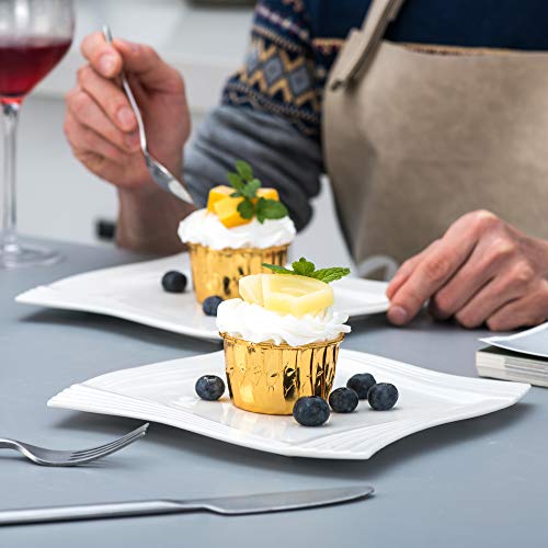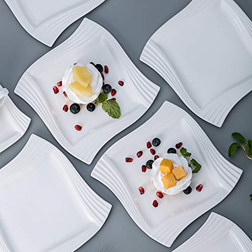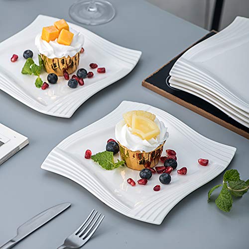 MALACASA, Serie Amparo, Piatto da Dessert Piatti 24 Pezzi in Porcellana Avorio Bianco Piatti per 24 Persone