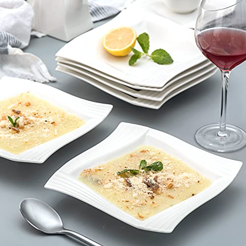 MALACASA, Serie Amparo, Servizio da Piatti in Porcellana Bianca Crema 6 Pezzi Set Piatto Fondo per 6 Persone