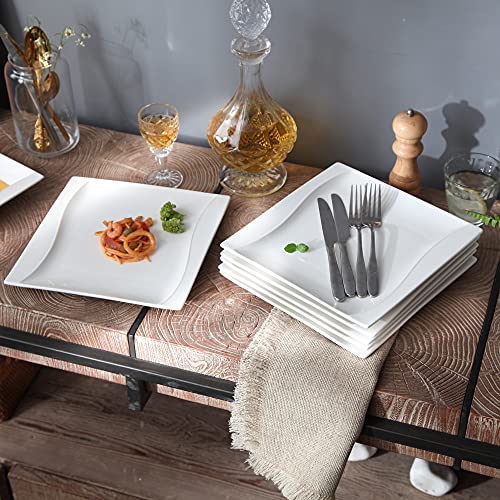 MALACASA, Serie Carina, 6 Pezzi Piatti Piani Porcellana Avorio Bianco Ceramica Bianca Crema Piatti per 6 Persone