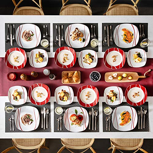 FACILE DA PULIRE - Questo servizio da tavola rosso e bianco ha una glassa liscia, facile da pulire a mano o con detersivo piatti.Con l'ammirevole capacità di resistenza al calore. Atossico, innocuo e certificato FDA. Adatto per lavastoviglie, microonde e frigoriferi, ecc.