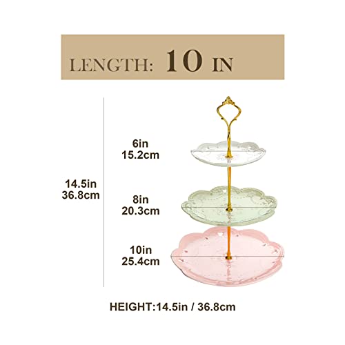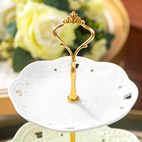 MALACASA, Series Sweet.Time, Vassoi per torte, (14,24, 20,32 e 25,4 cm) Stoviglie in porcellana 3 Strati di Piatti, Ciondolo in argento per dessert, frutta, muffin