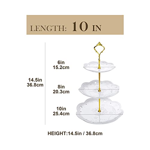 DESCRIZIONE TAGLIA - Ogni livello di supporto per cupcake è realizzato in porcellana di alta qualità con sensazione di mano morbida(facile da pulire e lavare). Il supporto è 14,5 "di altezza, le piastre sono 10.5", 8", 6" di diametro. Sembra elegante e si sposa bene con qualsiasi decorazione e tavolo.