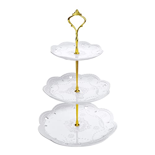 MALACASA, Series Sweet.Time, Vassoi per Torte, (14,24, 20,32 e 25,4 cm) Stoviglie in Porcellana 3 Strati di Piatti, Ciondolo in Argento per Dessert, Frutta, Muffin, Colore Bianco