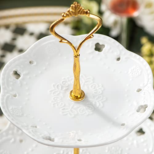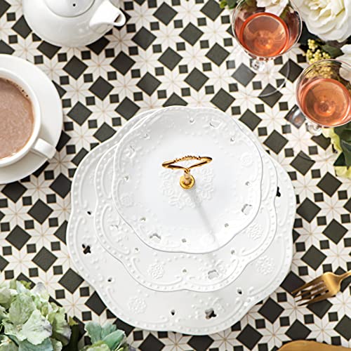 DESIGN ELEGANTE - Piatto in porcellana bianca con splendido motivo in rilievo è una collezione luminosa, elegante e lussuosa, perfetta per la visualizzazione di cupcakes, dessert, caramelle, biscotti, frutta e ogni altra cosa.