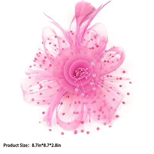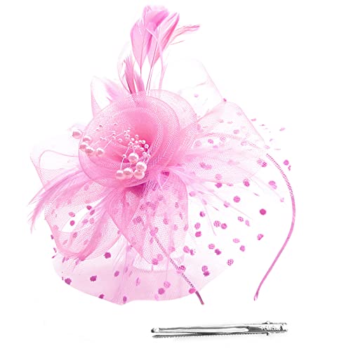 Malaxlx Fascinator - Cappello a forma di fiore in rete, con piume, per capelli, per feste, matrimoni, chiese, derby, cocktail, per donne e ragazze, Colore: rosa., Taglia unica