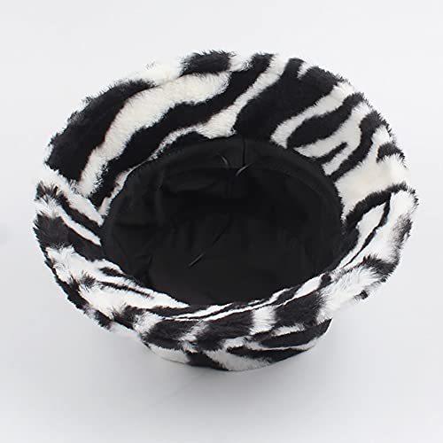 Malaxlx Zebra Stampa Cappello da Pescatore Peloso Donna Invernali Caldo Soffici Sfocato Peluche Cappello in Pelliccia Sintetica